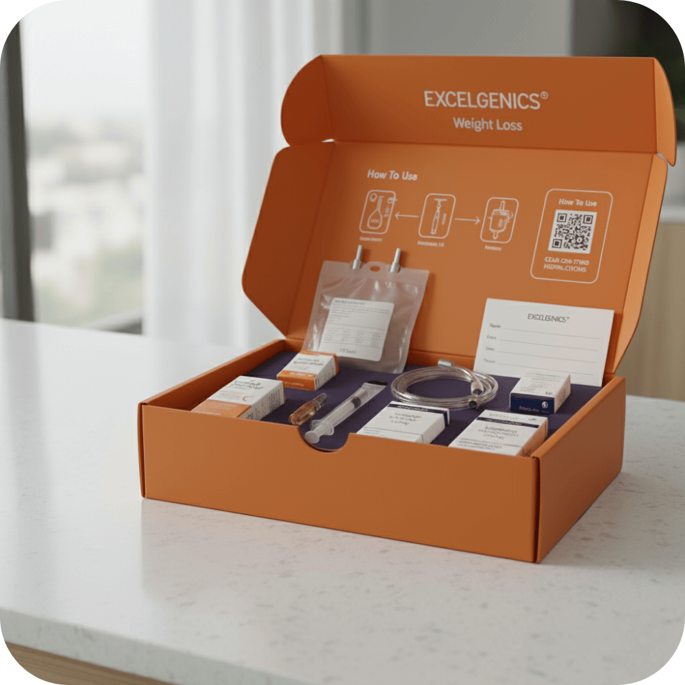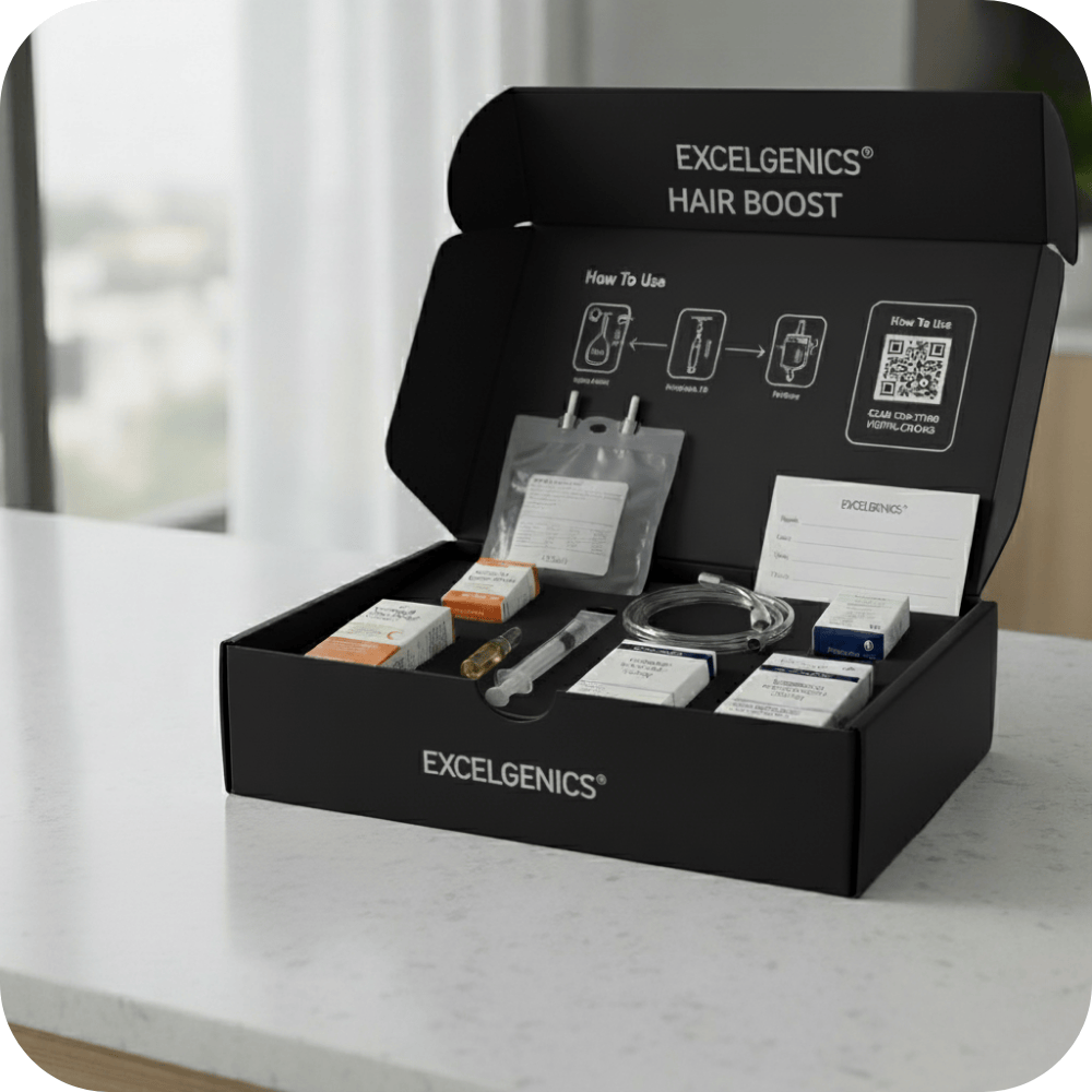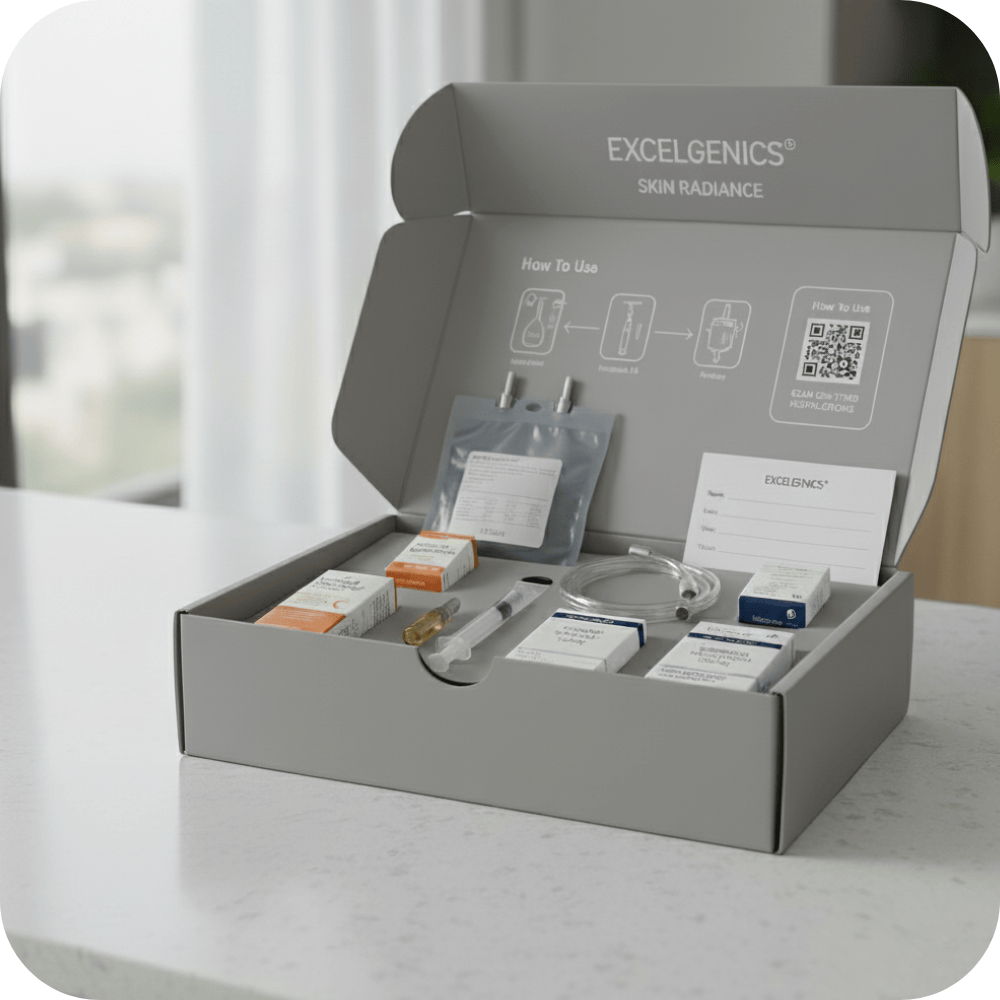 Our IV kits support a wide range of clinical applications, including hydration, micronutrient delivery, and specialized therapies such as Hair Boost, Weight Loss, Myers’ Cocktail, and Skin Radiance. Trusted by healthcare professionals, Excelgenics IV kits provide consistent performance that enhances both patient care and operational efficiency.