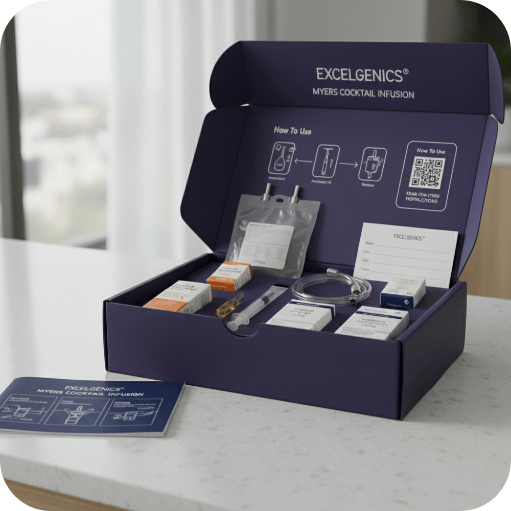 Intravenous therapy services have not been evaluated by the Food and Drug Administration (FDA). These formulations are not intended to diagnose, treat, cure, or prevent any disease and should only be administered after consultation with qualified doctors. These therapies must never be self-prescribed. Information provided here is for educational purposes only and is not a substitute for medical advice. All therapies are custom-prepared by Excelgenics India LLP medical experts. The therapy names are descriptive and used for informational purposes only.