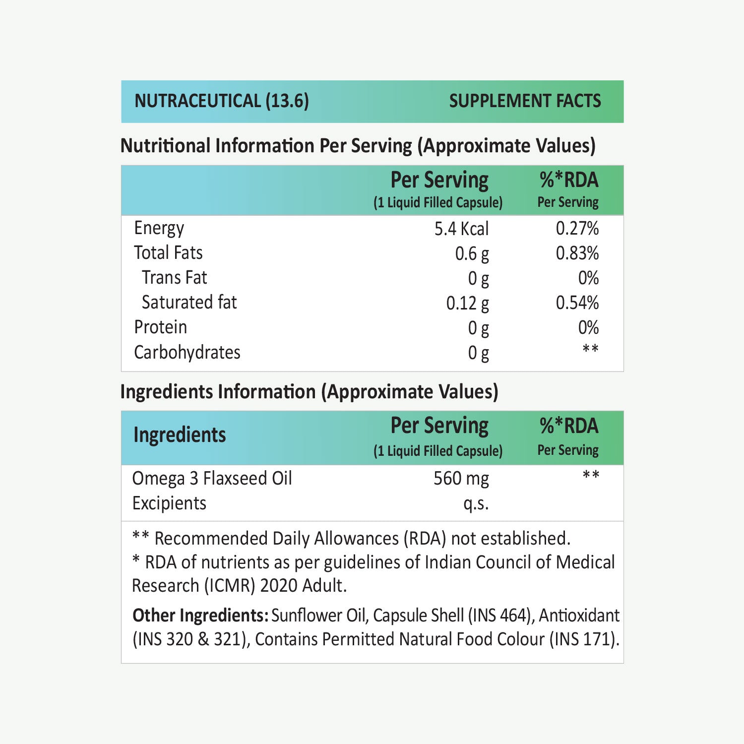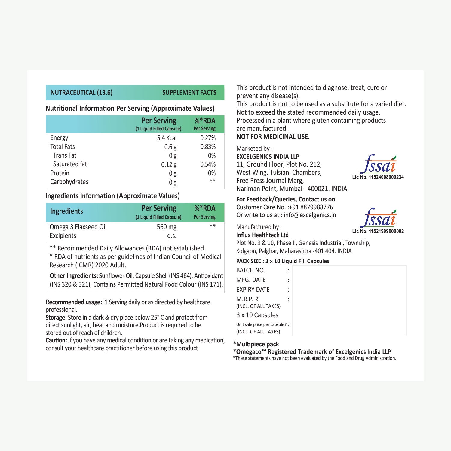 Omegaco by Excelgenics is a vegetarian omega-3 supplement made from cold-pressed flaxseed, offering pure plant-based ALA (Alpha-Linolenic Acid) instead of fish sources. It’s designed to support omega 3 for brain health and omega 3 for heart health, while being gentle, chemical-free, and suitable for vegetarian diets.